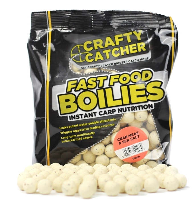Boilies Crafty Catcher 15mm/500g sú určené pre krátkodobé vychádzky a hneď po namočení uvoľňujú esencie ktoré lákajú všetky kaprovité ryby.