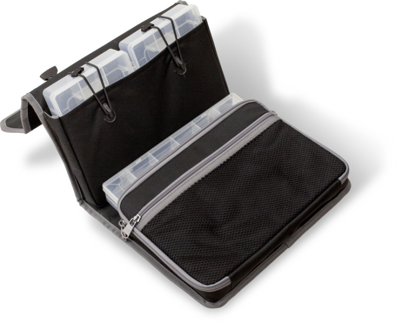 Kompaktná taška s integrovanými plastovými boxami na prehľadné zoradenie vybavenia, či už prívlačových nástrah, plavákov, bižutérie a podobne. 3 integrované boxy