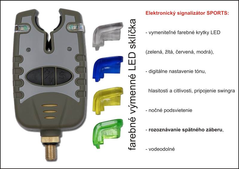 signalizátory záberu namontované na stojane majú automatické nočné podsvietenie - po zotmení sa automaticky zapnú dve pozičné - LED diód