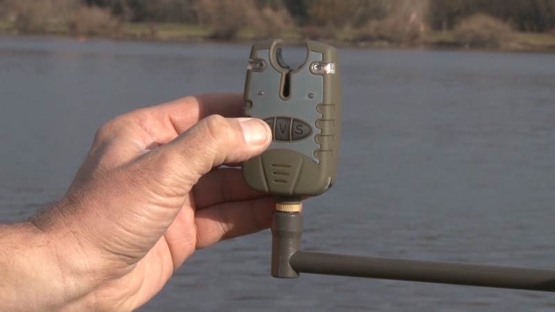 Detailný pohľad na signalizátor v ktorom je položený prút ktorý je pripravený už len na záber a dokonale sadne do oblúčika na signalizátore