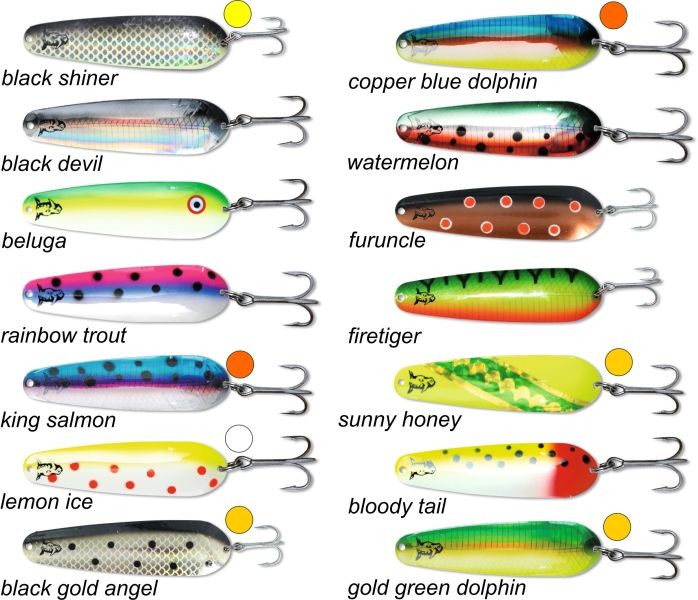 unikátna návnada na lov trolingom – vláčením za člnom na veľké ryby. Špeciálne vyvinuté predovšetkým na morské pstruhy atď. Jej vrtký, agresívny pohyb dokonale láka dravce. Vyrába sa vo veľkosti 87mm a 10tich farebných kombináciách.