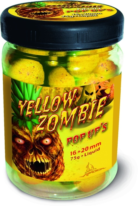 Plávajúce žiarivo-neónové žlté boilies Yellow Zombie s dipom sú v balení k dispozícií v dvoch veľkostiach. Možnosť použitia samostatne alebo v kombinácií s potápavými. Plávajú počas dlhej doby. Balenie 75g