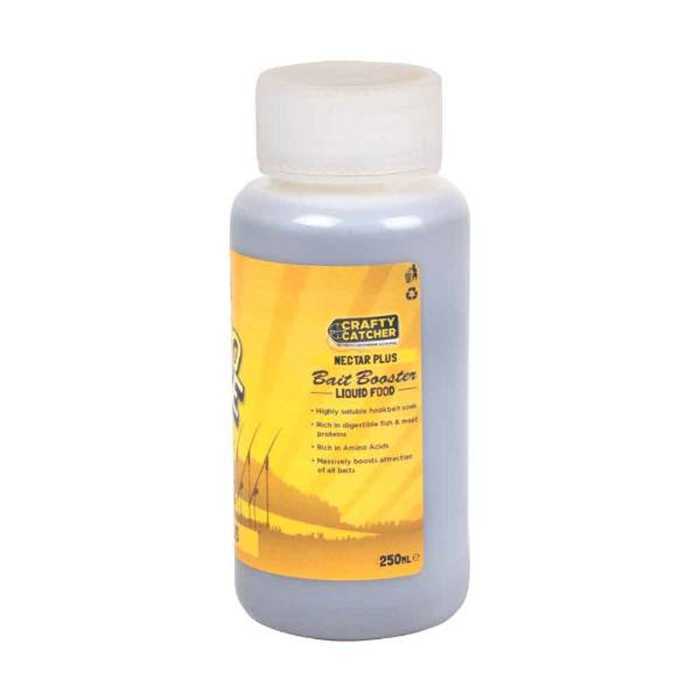 Tekutý posilovač Crafty Catcher Booster 250ml je vhodný pre zatraktívnenie boilies, peliet, krmiva alebo priamo háčikovú nástrahu.