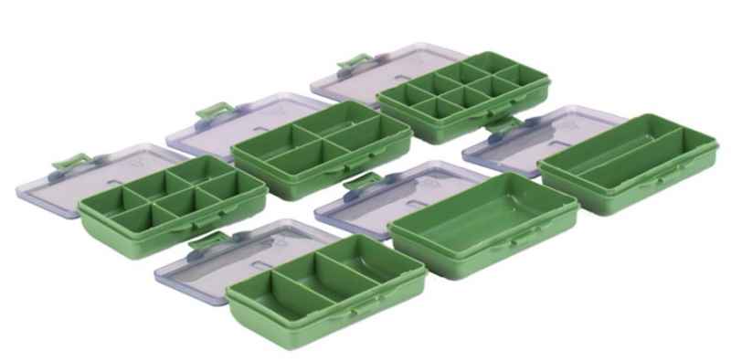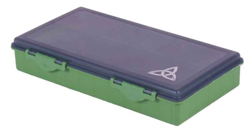 Priložených 6 krabičiek s rozmermi 10*6,5cm zase pomôže prehľadne roztriediť háčiky, obratlíky, karabíny, zarážky a iné drobnosti. Každá z krabičiek má iný počet priehradiek (1/2/3/4/6/8).