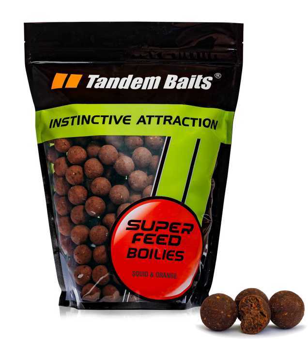 Boilies Tandem Baits Super Feed prevýšia kvalitu domácky vyrobených boilies. Na ich výrobu boli použité kvalitné suroviny a atraktory. Arómu uvoľňujú postupne, privábia kapre aj z veľkej diaľky.