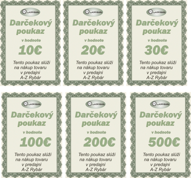 Neviete po čom túži srdce vášho rybára? Vieme aké náročné je trafiť sa mu do chuti. Presne pre tieto prípady sme pre vás pripravili darčekové poukážky. Stačí si vybrať požadovanú hodnotu poukážky a váš rybár si sám vyberie čo potrebuje.