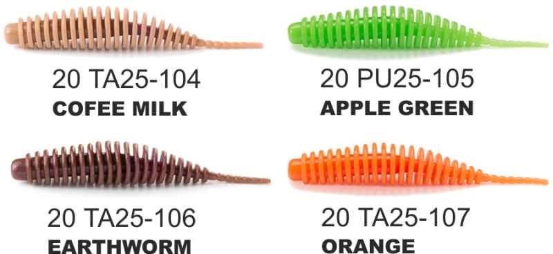 Tieto nástrahy nápadne pripomínajú obrúčkatého červa. Veľký počet obrúčok sa vo vode vlní, vytvára vibrácie a zaujme pozornosť rýb. Vďaka poddajnému materiálu sa obrúčky vlnia aj pri minimálnom pohybe, takže nástrahy sa hodia aj na pomalé vedenie. Účinnosť je podporená príchuťou rak