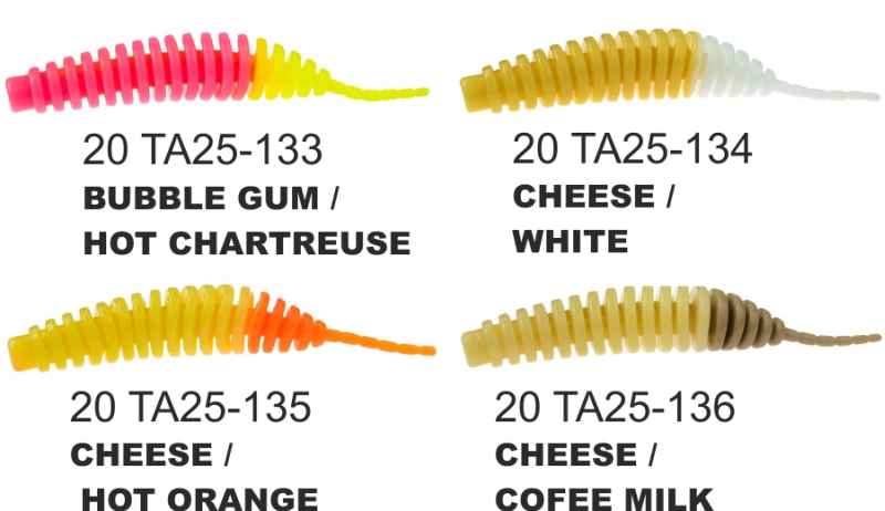 Pohyblivá nástraha počas všetkých situácií. Môže za to veľký počet širokých obrúčok, pričom telo je úzke. Hodí sa tak na rýchle ako aj pomalé vedenie. Aróma:syr