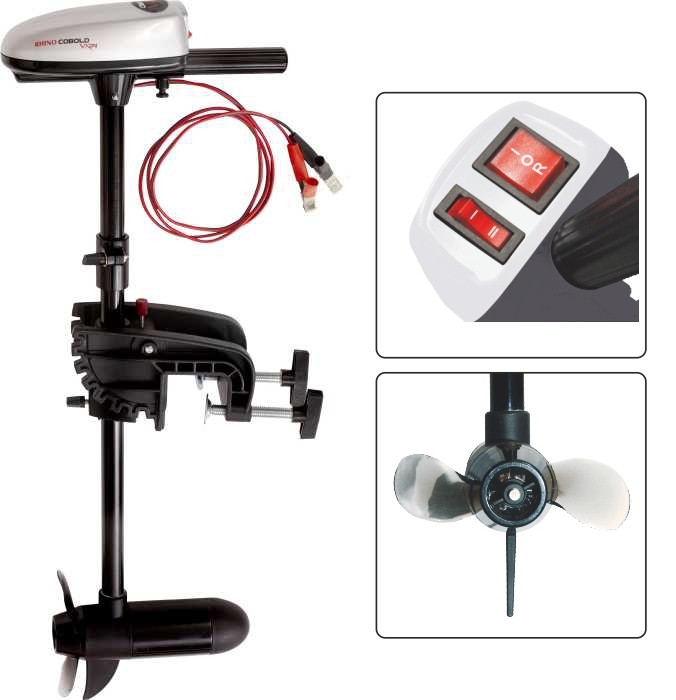 Nová rada malých závesných Rhino lodných elektromotorov pre nafukovacie člny, laminátové člny a kajaky. Malý, ale ľahko ovládateľný a efektívny. So svojimi 24-mi librami tlačnej sily je Cobold navrhnutý na menšie loďky a kanoe. Cobold má ako aj jeho väčší bratia optimálnu spotrebu energie pre dlhšie používanie na jedno nabitie akumulátora. Ponor a tuhosť riadenia je plynule nastaviteľná. Má dve rýchlosti vpred a vzad. Motor sa dá ľahko vyklopiť ručne a tiež sa uvoľní/vyklopí v prípade nárazu na prekážku alebo plytčinu.