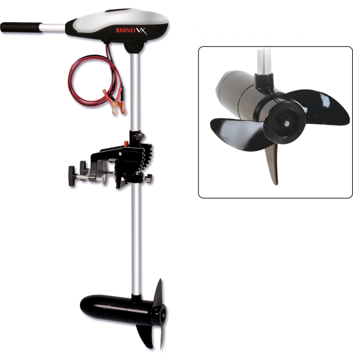 Rhino VX sa vyznačuje nízkou spotrebou energie, čo umožňuje dlhší manipulačný čas. Motor sa riadi a ovláda teleskopickou rukoväťou a má 5 rýchlostí vpred a 2 vzad. Motor môže byť jednoducho vyklopený z vody stlačením tlačidla. Hĺbka ponoru vrtule a tuhosť riadenia sú plynule nastaviteľné. S číslicovou indikáciou stavu akumulátora ľahko odhadnete svoj dojazd. Rhino VX poskytuje jednoduché, komfortné a bezpečné ovládanie. Vhodné pre všetky bežné a rekreačné plavidlá.
