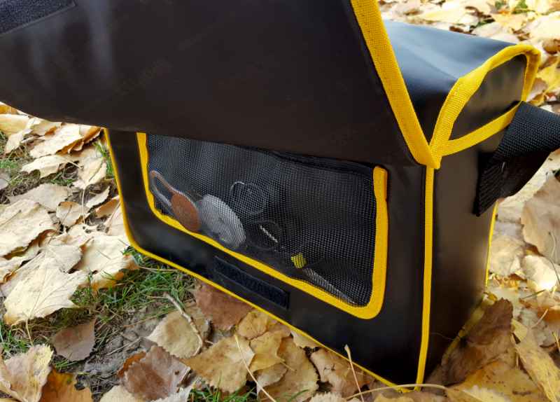 Kvalitné rybárske tašky s odolným PVC povrchom chránia vaše vybavenie pred vlhkosťou. PVC povrch pred konkurenciou vyniká tým, že ho jednoducho očistíte. Hlavná priehradka je rozdelená na 2 boxy, do ktorých si uložíte krabice s nástrahami. Na vonkajšej strane sa nachádza sieťované vrecko na uloženie ostatného rybárskeho príslušenstva. Samozrejmosťou je pevný popruh na rameno.