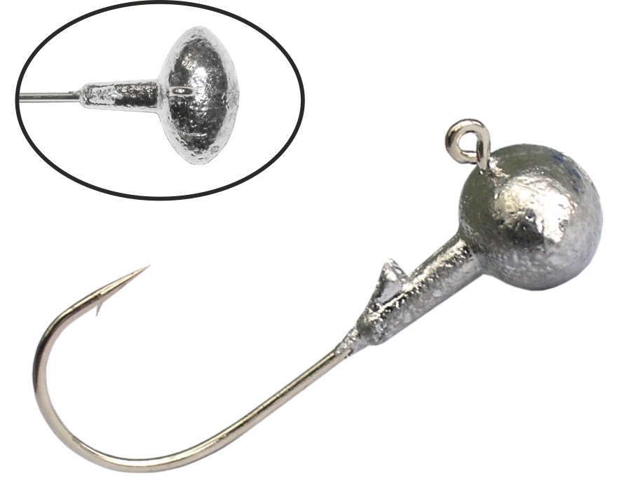 Jigové hlavy bez krčku na lov dravcov prívlačou s gumenými nástrahami - twistermi, banjami alebo ripermi.