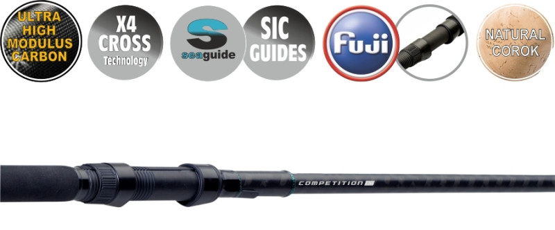 Semiparabolický blank sa vyznačuje veľmi silnou kostrou prútu a výbornými tlmiacimi schopnosťami. Vďaka tomu dokážete vyvinúť na rybu veľký tlak a ryba sa rýchlejšie unaví. Celá séria prútov Competition Carp je osadená kvalitnými SIC očkami, pričom navádzacie očko má priemer 50mm, čo doteraz nebolo zvykom. Voľba sedla navijaku pri týchto prútoch padla na overené DPS. Delená rukoväť je potiahnutá odolným duplonom. Rybárov určite zaujme aj moderný pokrokový dizajn.