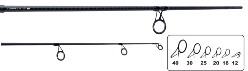 Semiparabolický blank sa vyznačuje veľmi silnou kostrou prútu a výbornými tlmiacimi schopnosťami. Vďaka tomu dokážete vyvinúť na rybu veľký tlak a ryba sa rýchlejšie unaví. Celá séria prútov Competition Carp je osadená kvalitnými SIC očkami, pričom navádzacie očko má priemer 50mm, čo doteraz nebolo zvykom. Voľba sedla navijaku pri týchto prútoch padla na overené DPS. Delená rukoväť je potiahnutá odolným duplonom. Rybárov určite zaujme aj moderný pokrokový dizajn.