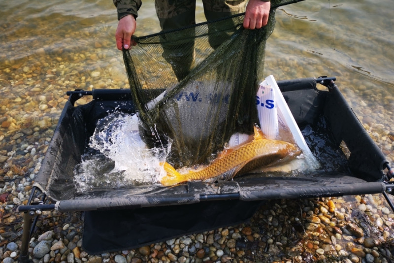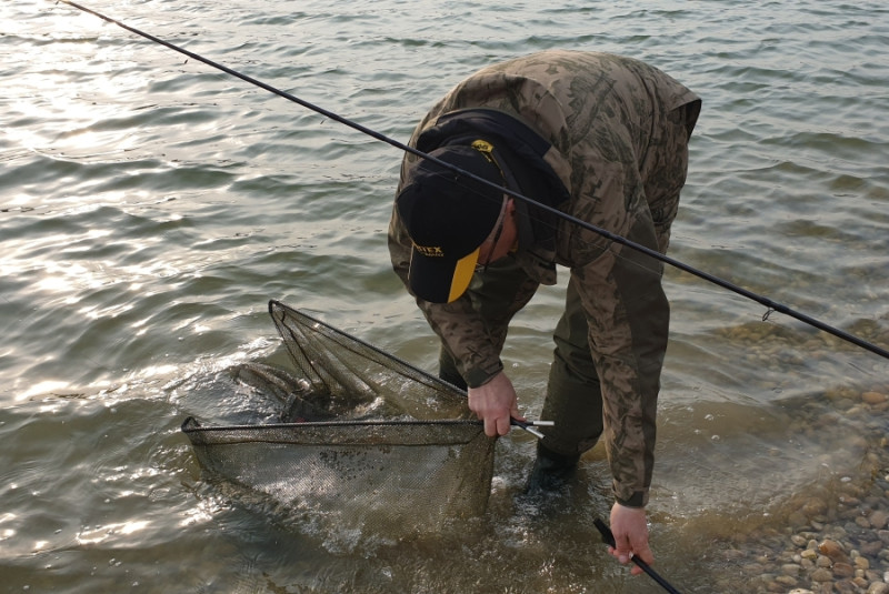 Veľký kaprársky podberák s metrovými ramenami a rúčkou dlhou 2m s možnosťou rozloženia na dva kusy. Podberák má štíhlu ale pevnú rúčku, sieť je šetrná k rybám a je rýchloschnúca.