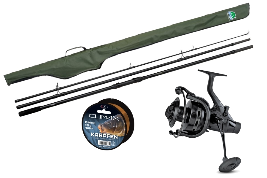 Kaprársky set kaprový 3 dielny prút 3,90m / 3lbs obsahuje perfektný dvojbrzdový navijak s baitrunnerom, kaprársky 3dielny prút 3,90m / 3,0lbs, silon a púzdro na prút.