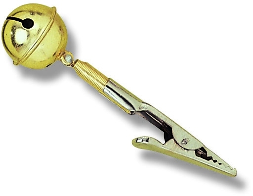 Signálka zvonček ( rolnička ) Eel Bell, kovový zvonček s pružinou-mosadz, pripínanie pomocou štipca, počet-1 ks.