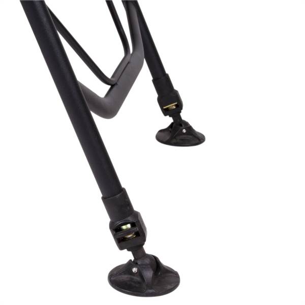 Kreslo s odlahčenej ocele s lakťovými opierkami potiahnute odnímateľným flísom. Má nastaviteľné a skladacie nohy s bahennými koncovkami.