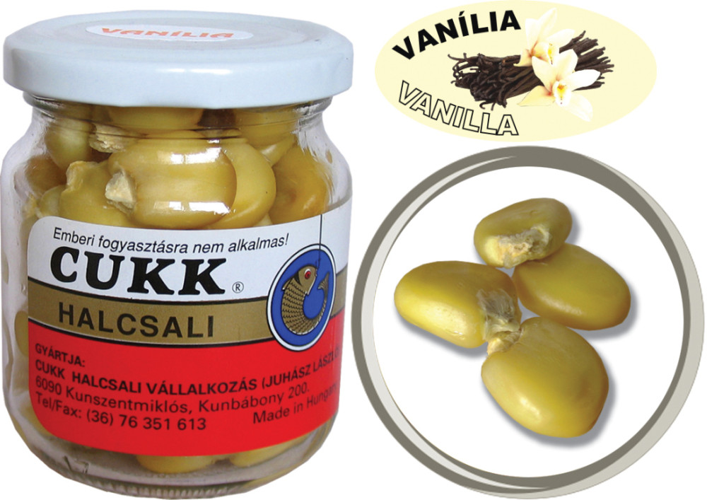 Zavárané kukuričné zrná s priemerom do 2,5 cm, bez nálevu, príchuť Med, farba žltá, balenie 125 g, univerzálna nástraha na veľké kaprovité ryby, nastražuje sa ,ako boilies a je vhodná pre lov na feeder a na ťažko.