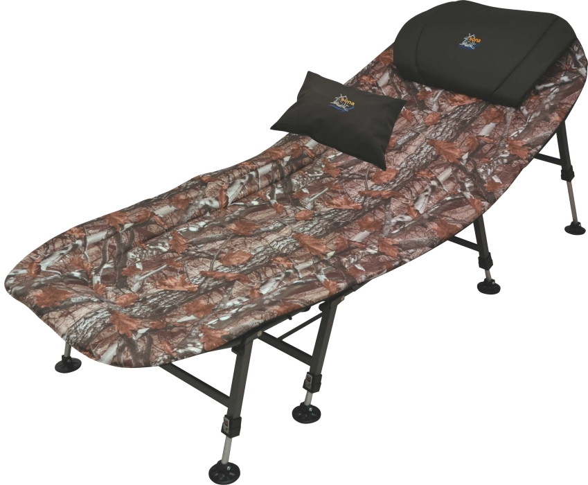 Stabilné a hlavne pohodlné lehátko pre rybára. Termoizolačný materiál, extra vankúš, vysoká nosnosť až 150kg. 8 výsuvných nôh s pätkami proti zaboreniu,