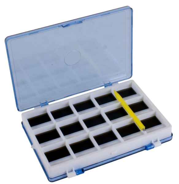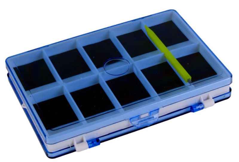 Praktická magnetická krabička na prehľadné ukladanie rybárskych háčikov. Je obojstranná s 30 priehradkami a rozmerom 12,5 x 9 x 2cm.