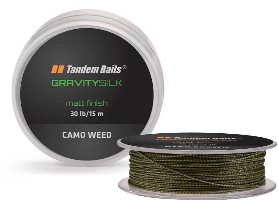 Super potápavá šnúra Gravity silk bola navrhnutá s jediným účelom a to dokonalé splynutie pod vodnou hladinou. Extrémne pevná, inovatívna so schopnosťou dokonalej priľnavosti k nerovnostiam na dne. Navrhnutá bez kompromisov vďaka čomu sme boli schopný získať parametre nedosiahnuteľné pre štandardné šnúry. PTFE je materiál ťažší ako voda. Dynaema® vlákna HMPE sú extrémne pevné a odolné voči oderu. Šesť perfektne spletených vlákien tvorí extrémne odolnú šnúru s rýchlou potápavosťou. Povrchová matná úprava potláča odrazy svetla, vďaka čomu je pre opatrné ryby prakticky neviditeľná. Ideálna pre kaprové montáže. Dostupná v dvoch farebných prevedeniach: Green Camouflage (zelená kamufláž) vhodná pre lov v miestach s bujnou vegetáciou a Dark Brown (tmavo hnedá) pre povrchy pokryté pieskom, štrkom a bahnom.
