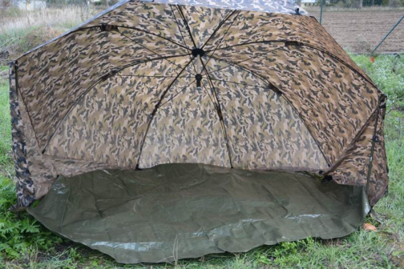 Brolly prístrešok dáždnikového typu sa rýchlo rozkladá a skladá, je ideálny na kratšie rybačky. Spoľahivo Vás ochráni pred silným slnkom, dažďom alebo nepríjemným vetrom. Má oceľový rám, nepremokavú odnímateľnú podlahu na suchý zips, kolíky na upevnenie.
