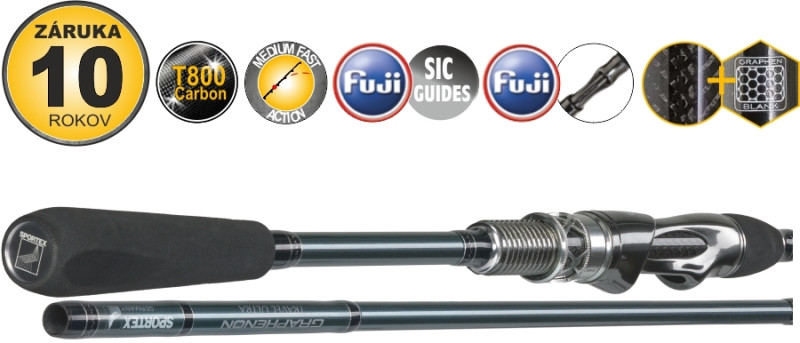 Špeciálna cestovná verzia prívlačových prútov, ktoré disponujú obrovskou silou, vysokou odolnosťou a dlhými, presnými hodmi. Malý prepravný rozmer dovoľuje každému rybárovi zobrať si ho na cesty do kufra alebo batohu. Blank okamžite prenáša každú vibráciu až do rukoväte. Kontrola nad chodom nástrahy a signalizácia záberu tak dostáva úplne nový rozmer. Stredne rýchla, progresívna akcia prútu vám poskytne nevšedný zážitok pri zdolávaní. Napriek viac dielnemu prevedeniu si prút zachováva takmer nezmenenú akciu. Kvalitný prút sa nezaobíde bez kvalitných doplnkov, ktorými v tomto prípade sú FUJI KL/KT-SIC očká a ergonomické sedlo FUJI TVS. Nevšedný Graphenon spin bol vyvinutý pre nevšedných rybárov hľadajúcich nevšedné zážitky. Ak hľadáte high-tech prút, Graphenon bude pre vás jasná voľba.