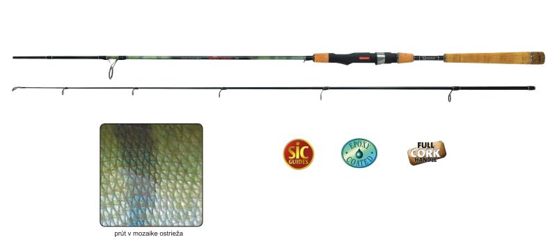 Prívlačový prút špeciálne vyvinutý na lov ostriežov. Má štíhly, ľahký blank optimálne prispôsobený na ľahkú prívlač. V tejto cenovej kategórii jednoznačne zdvihol laťku. Má skvelý dizajn s vyobrazením sfarbenia ostrieža, SIC očká a korkovú rúčku.