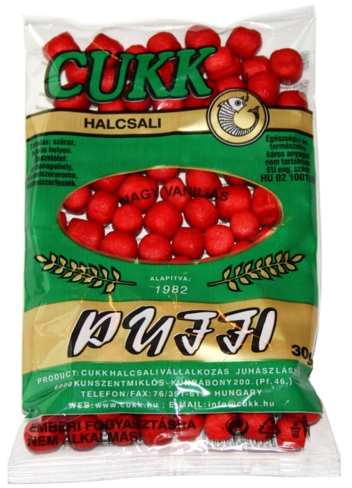 Kukuričná Cukk Puffa BIG je dlhodobo žiadaná nástraha, vyrobená z prírodných komponentov. Používa sa pri love na ťažko a na feeder. Napichuje sa priamo na háčik ale dá sa nastražiť aj spôsobom ako boilies. Hodí sa na lov kaprov a bielych rýb.