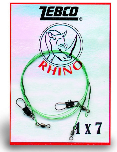 Nové rhino oceľové lanká sú k dispozícii v rôznych špecifikáciách a zo 7 alebo 49 vláken. Verzia zo 7mich vláken je ideálna keď potrebujete extrémnu silu, zatiaľ čo verzia 49tich vláken je obzvlášť mäkká. Tento typ 1 x 7 má nylonovú povrchovú úpravu, s obratlíkmi a obratlíkmi s karabínou. v balení sú 2 kusy