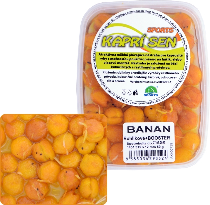 - Rohlíkové boilies v boostri - 12mm/50g - BANÁN