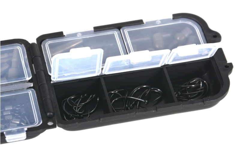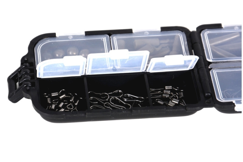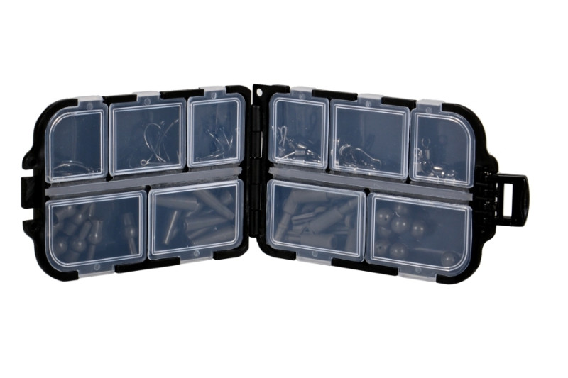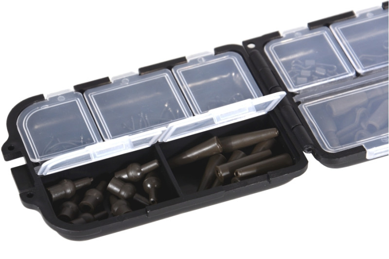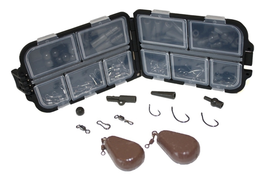 Krabička plná rybárskej bižutérie potrebná k výrobe kaprárskych montáži k lovu kapra. Obsahom krabičky sú háčiky, obratlíky, rýchlo upínacie obratlíky, gumové konektory, korálky, bezpečnostné klipy konektorov a deliace rýchloklipy. Nevyhnutnou súčasťou montáží sú závažia ktoré sú zavesené na obratlíku a dodávané v hmotnosti 60 gramov v hnedej farbe pre dokonalé splynutie s dnom. Háčiky sú v troch veľkostiach 6, 8, 10 bez protihrotov s očkom. Všetko uložené v jednej praktickej otvárateľnej krabičke.