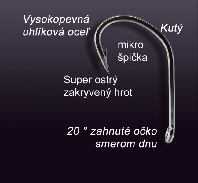 Na tomto háčiku je veľmi zaujímavo vytvarovaný oblúčik. Je to kvôli tomu, aby nemala ryba žiadnu šancu dostať sa z háčika pri zdolávaní. Ďalšia super vlastnosť je, že ho môžeme použiť na ľubovolnú koncovú montáž.