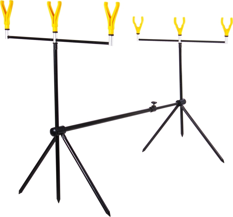 Veľmi kompaktný a jednoduchý rybársky stojan až na 3 prúty. Hrazdy sú osadené štandardnými rybárskymi závitmi. Prispôsobiteľná dĺžka. Balenie obsahuje 6ks rohatiniek.