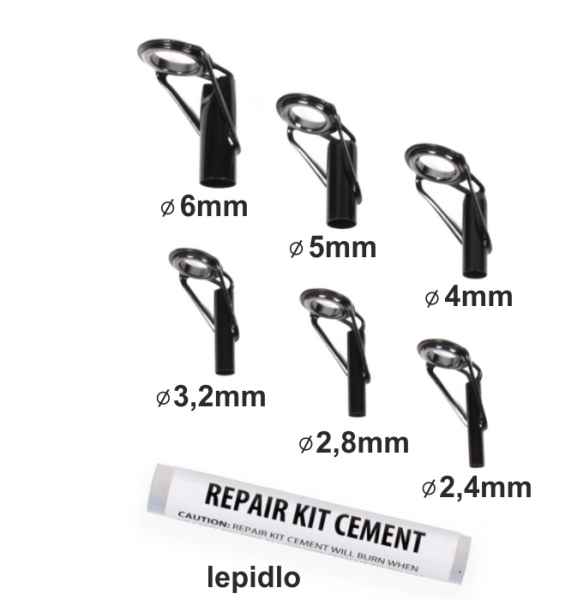 Koncové očko sa často poruší a presne na tieto prípady slúžia tie náhradné. V balení nájdete lepidlo a očká s priemerom násad: 2,4 / 2,8 / 3,2 / 4 / 5 / 6mm