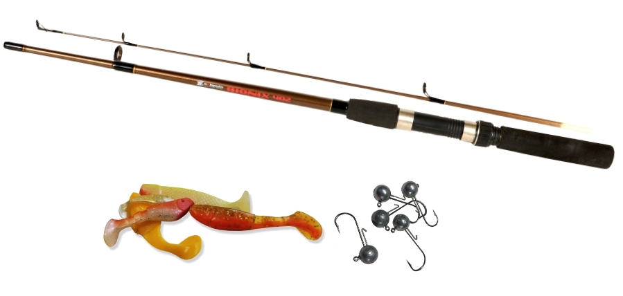 Krátky prívlačový prút a 5 gumených nástrah s jiggmi za výbornú cenu. Hodí sa na prelovovanie menších tokov a príbrežných oblastí.