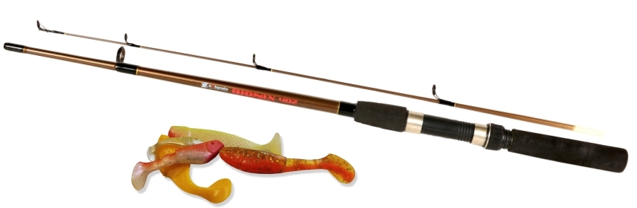 Krátky prívlačový prút s piatimi gumenými nástrahami za výbornú cenu. Hodí sa na prelovovanie menších tokov a príbrežných oblastí.