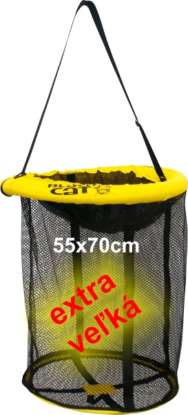 Veľmi praktická sumčiarska sieť na návnadové rybky. Malá kompaktná sieť s plavákom po obvode na vrchu, ktorý drží sieť na hladine v blízkosti lodi vždy s otvorom na vrchu. Otvor je uzatvárateľný rýchlosťahovákom.