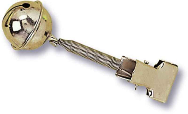 Signálka zvonček ( rolnička ) Eel Bell, kovový zvonček s pružinou-pochrómovaný, pripínanie pomocou štipca,počet-2 ks.