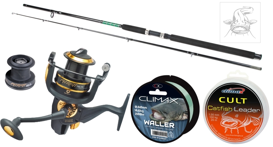 Sumčiarsky set, prút Nemesis Catfish 2,4m /200-500g + veľkokapacitný navijak s kovovou cievkou o kapacite 430m/0,30mm a k tomu silon Climax 0,60mm/200m+nadväzcová šnúraClimax. Náhradná cievka v balení.