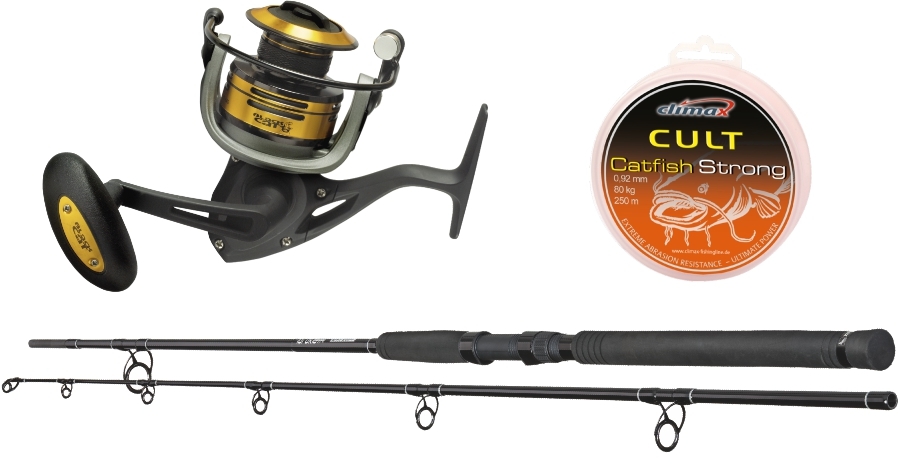 Sumčiarsky set v ktorom nájdete špičkový prút SPORTEX spolu s profesionálnym navijakom Black Cat Passion Pro FD 680 a šnúrou Climax.