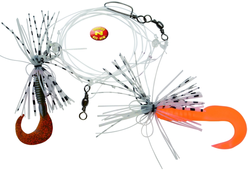 Systém - naviazaný nadväzec s dvomi gumenými twistrami s lákavými strapcami na lov tresiek a treskovitých rýb. Vlasec dĺžky 100cm.