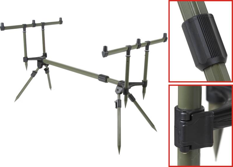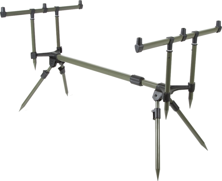 Robustný, stabilný, výškovo a dĺžkovo nastviteľný stojan Rod Pod na prúty za skvelú cenu v pomere ku kvalite. Má samostatne nastaviteľné všetky nohy, možnosť roztiahnutia až na 133cm, určený pre 3 kaprárske prúty. Dodáva sa v púzdre na transport.