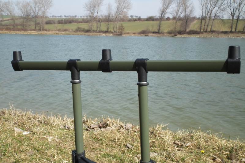 Pevný stojan pre kaprárov na poriadne výpravy za kaprami - pevné prevedenie celého stojanu - dobrá stabilita na brehu a pri zábere