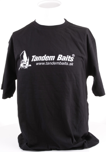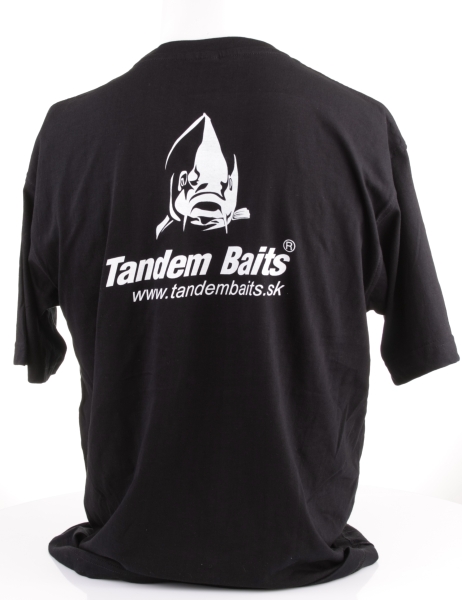 Bavlnené rybárske tričko čiernej farby s logom Tandem Baits a kaprom vhodné nielen pre kaprárov.