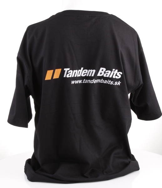 Bavlnené rybárske tričko čiernej farby s logom Tandem Baits , vhodné nielen pre kaprárov.