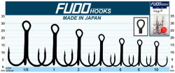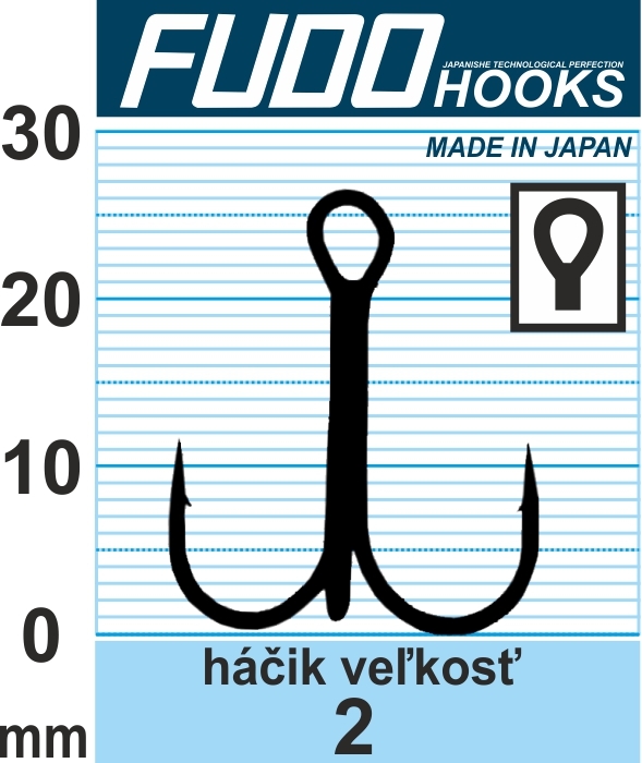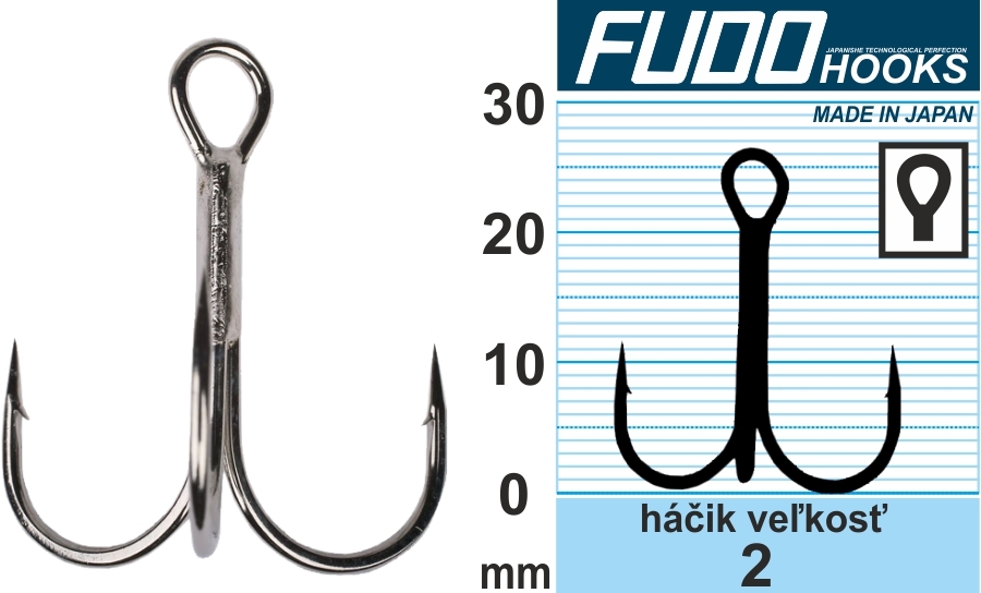 FUDO rybárske Japonské trojháčiky na chytanie dravých rýb. Vďaka svojej ostrosti je vysoká pravdepodobnosť záseku bez straty úlovku. Veľmi ostrý hrot s vysokou odolnosťou.