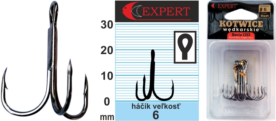 - Trojháčiky čierny, č. 6 v balení: 6ks