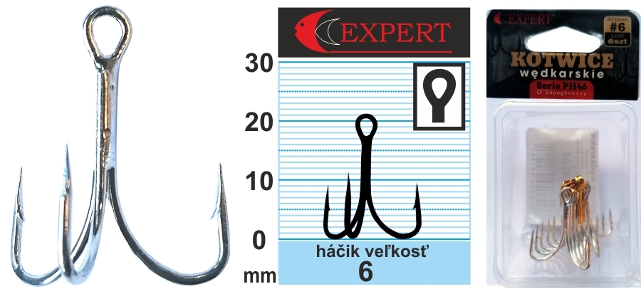 - Trojháčiky strieborný, č. 6 v balení: 6ks